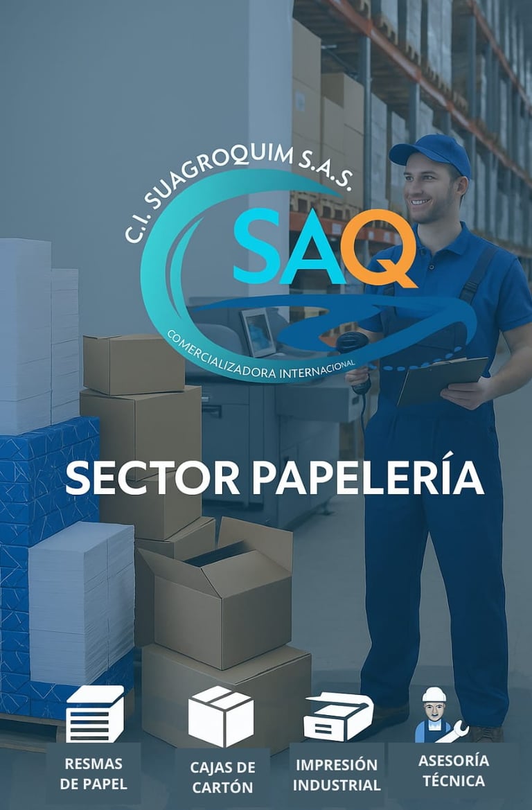 En C.I. Suagroquim S.A.S. somos proveedores especializados de papel, productos impresos, y soluciones de empaque en papel, atendiendo tanto la industria gráfica y editorial, como el sector de alimentos, retail y distribución masiva.